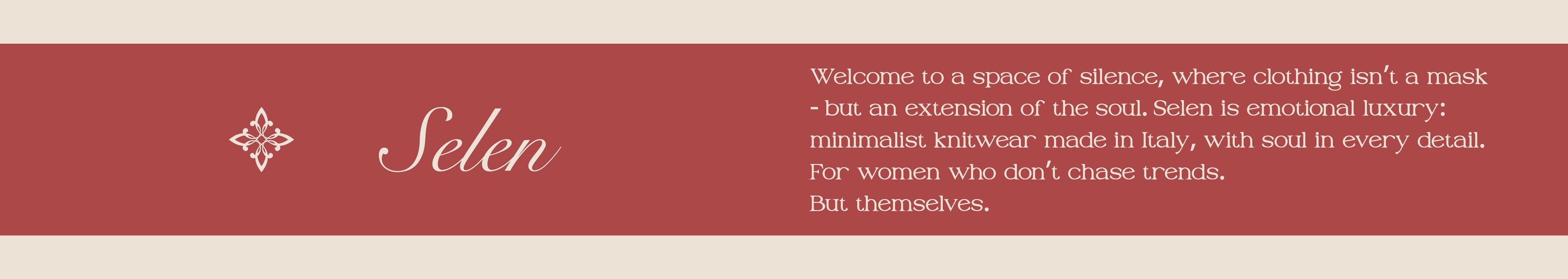 Selen è lusso emozionale: maglieria minimalista made in Italy, con un'anima in ogni dettaglio. Per donne che non inseguono le tendenze. Ma se stesse.