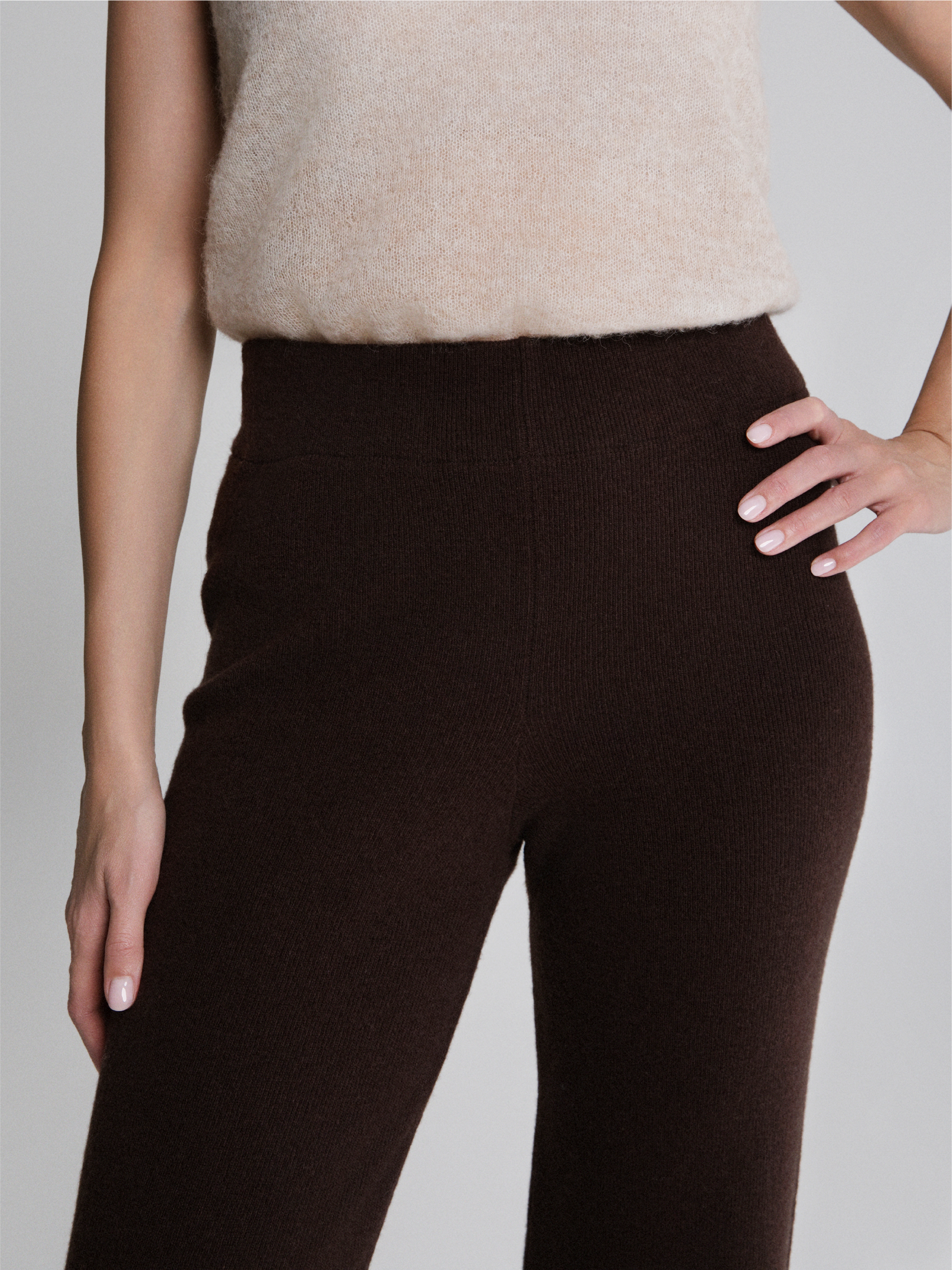 Pantaloni lunghi in maglia color cioccolato intenso Selen